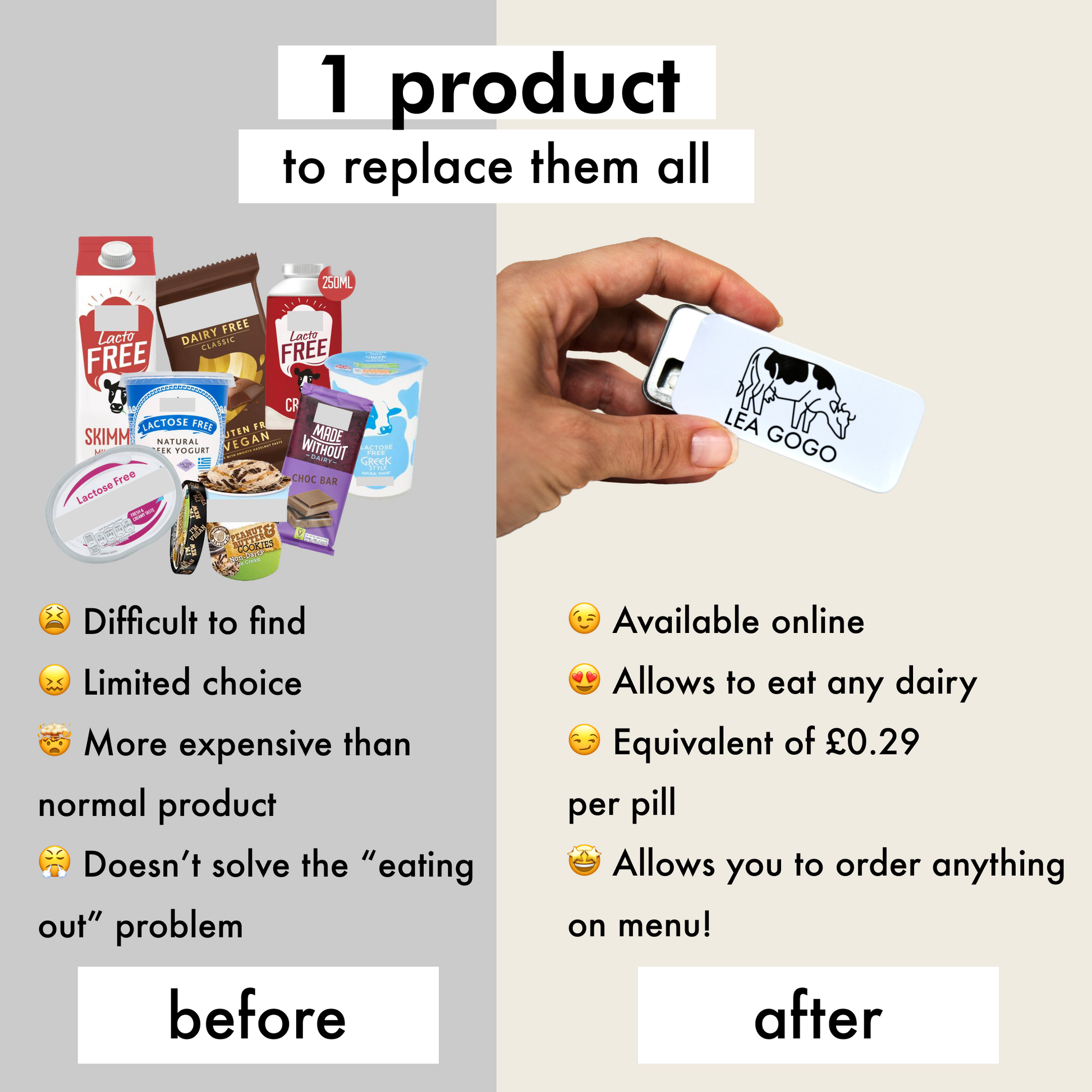 Take one tablet before having a meal or a drink that contains dairy. You can take up to 10 tablets a day.